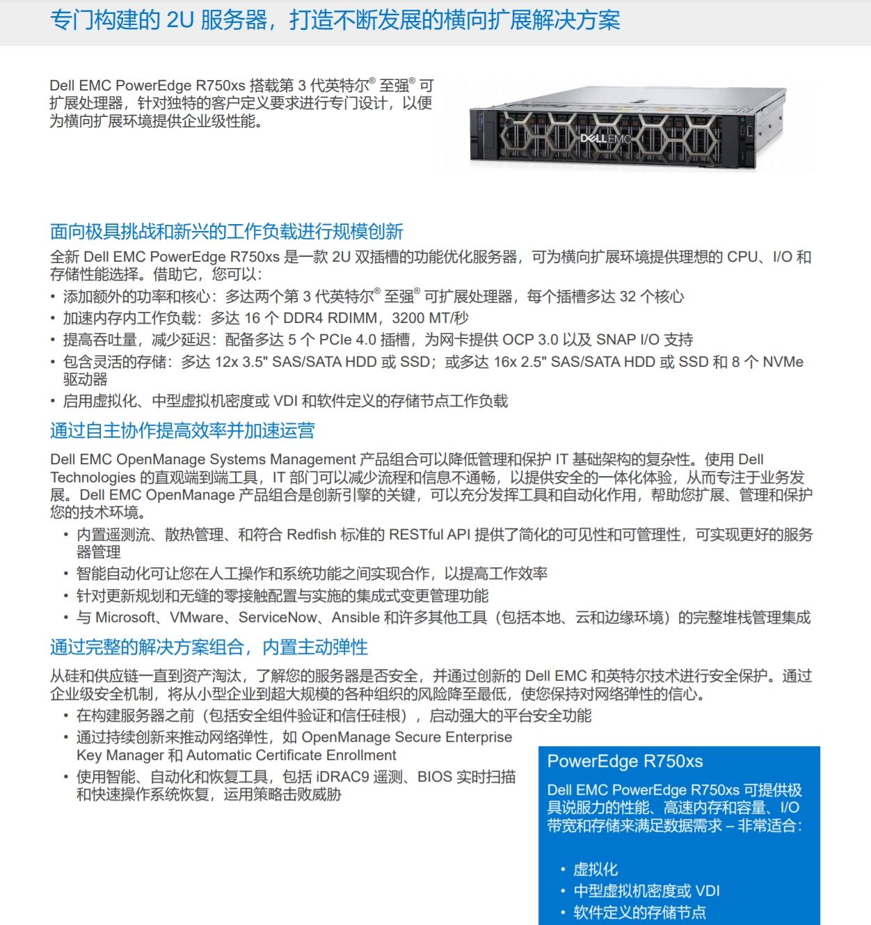 Dell EMC PowerEdge R750xs針對獨(dú)特的客戶定義要求進(jìn)行專門設(shè)計,以便為橫向擴(kuò)展環(huán)境提供企業(yè)級性能。