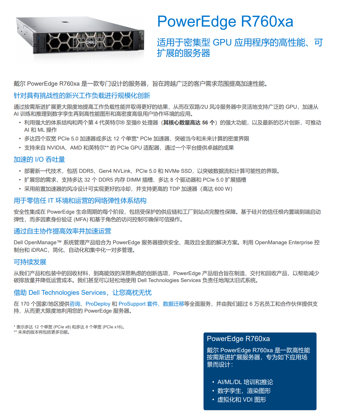 戴爾 PowerEdge R760xa 是一款專(zhuān)門(mén)設(shè)計(jì)的服務(wù)器,旨在跨越廣泛的客戶(hù)需求范圍提高加速性能。