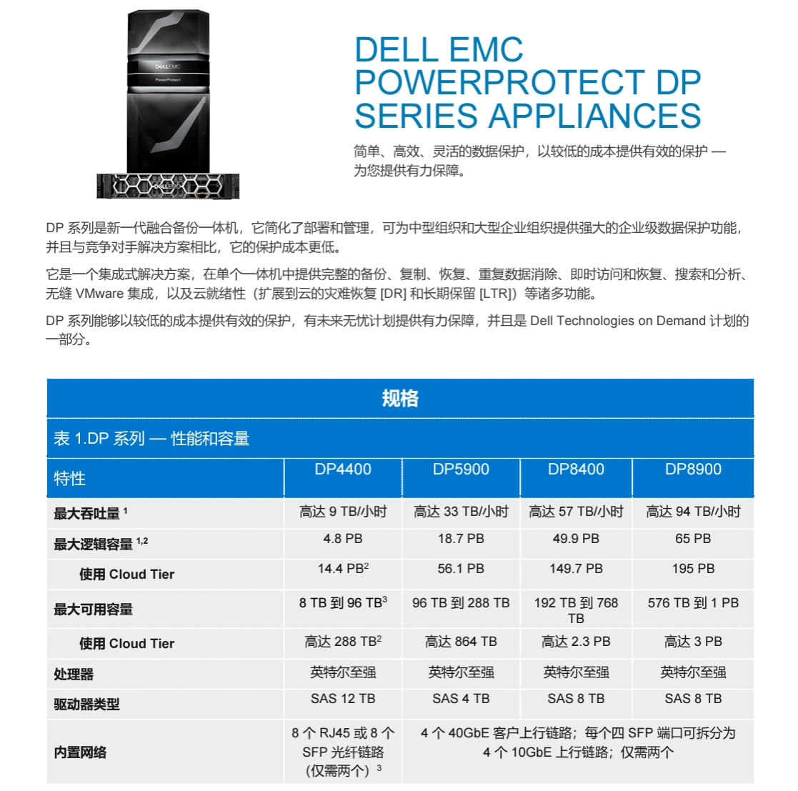 PowerProtect DP 系列備份一體機是 PowerProtect 數據保護存儲設備產品組合中的集成式設備解決方案。