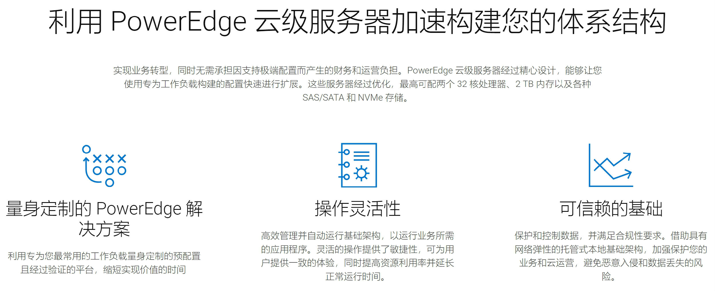 利用針對(duì)您的工作負(fù)載優(yōu)化的技術(shù),快速實(shí)現(xiàn)大規(guī)模數(shù)據(jù)中心的部署。使用 PowerEdge 云級(jí)服務(wù)器可幫助您高效地進(jìn)行規(guī)模化管理,同時(shí)利用集成式服務(wù)發(fā)展您的業(yè)務(wù)。