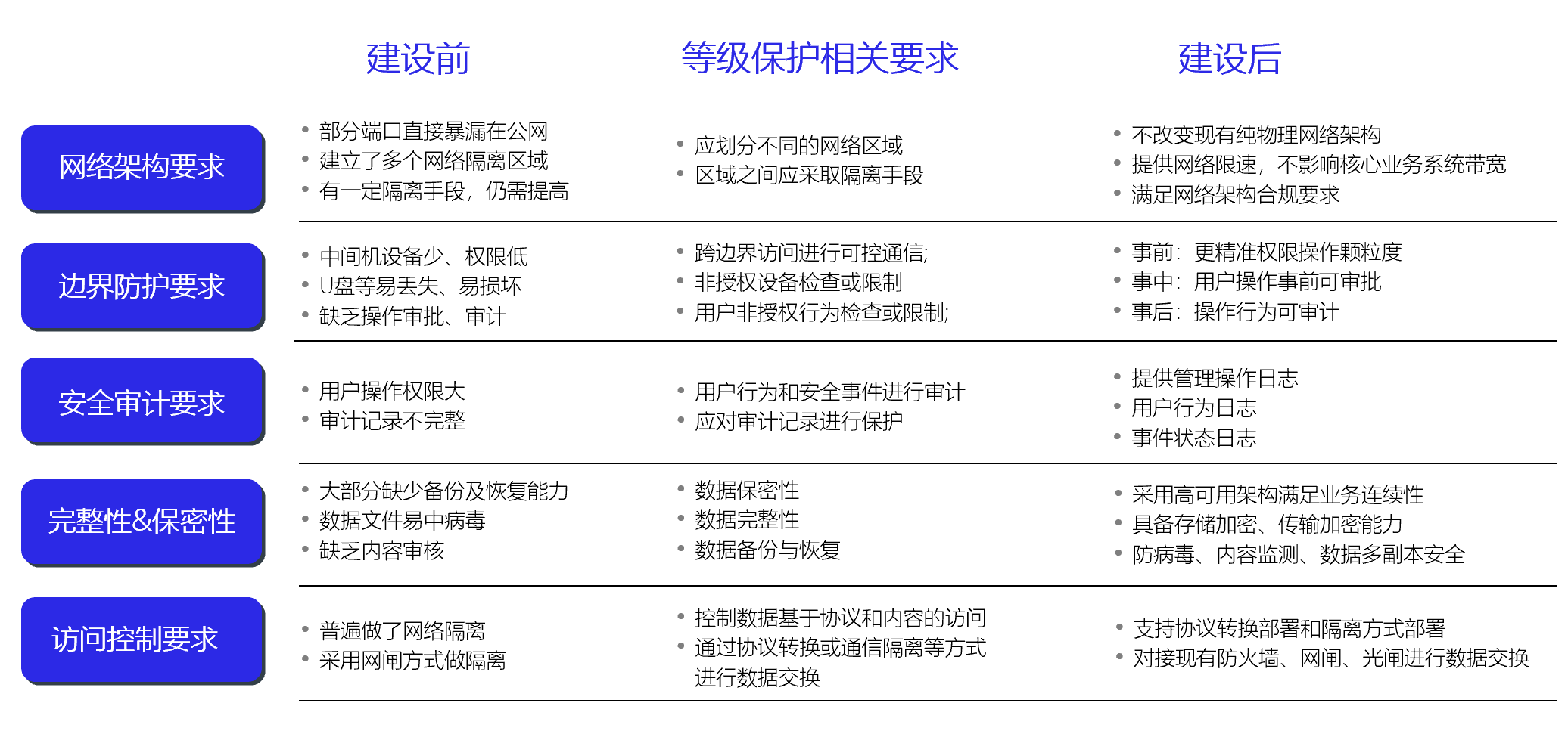 針對(duì)用戶的需求痛點(diǎn),進(jìn)行解決方案的建設(shè),滿足醫(yī)療行業(yè)的等保要求,跨網(wǎng)合規(guī)傳輸。
